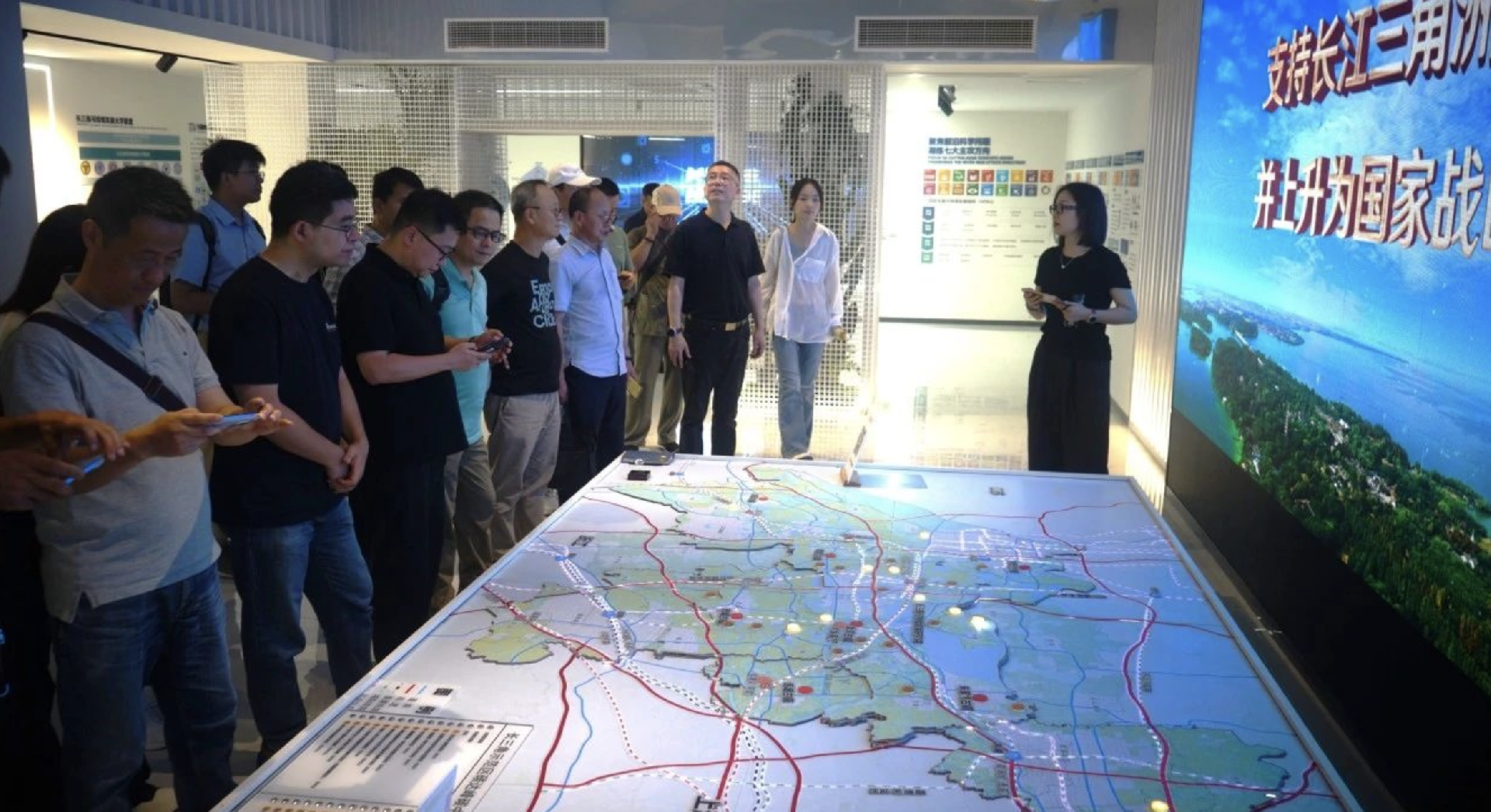 Under the leadership of Mr. Qian of the Yangtze River Delta Integration Demonstration Zone New Development Construction Co., Ltd., the participants visited the Fangting Water Institute located at the "Yangtze River Delta Origin" and shared the charm of the new landmark of the Yangtze River Delta Ecological Green Integration Development Demonstration Zone. Everyone set foot on three walking bridges, overlooking the model area of Jiangnan polder field and the living room area of Qingwujia three water villages, and stepped into the main guild hall, Shanghai hall, Jiangsu hall, Zhejiang hall and Anhui hall respectively. they intuitively felt the vivid practice of the typical case of cross-regional governance of "China plan" and lamented that "a quarter of an hour to visit Shanghai, Jiangsu, Zhejiang and Anhui". this slogan became a reality.